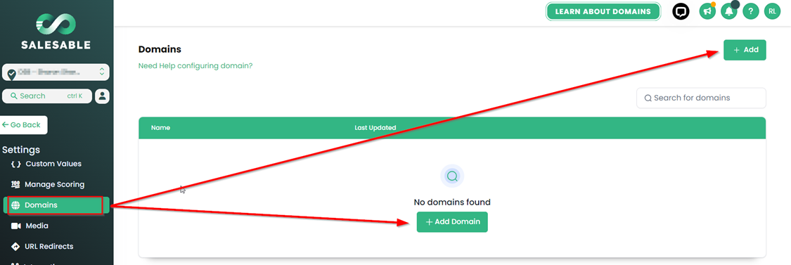 After you set up your DNS records, add the domain to your Salesable account. Here are the steps: