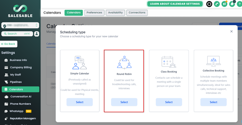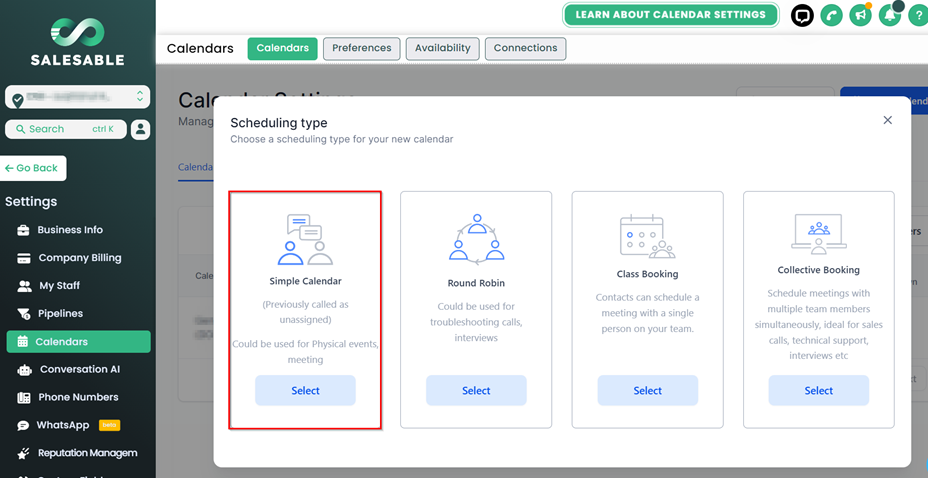 As the name suggests, a simple calendar is meant to bring two parties together at a time that suits both. Whether it's setting up a casual coffee meetup or a serious business discussion, this calendar is your go-to for finding that sweet spot when everyone can join in. This feature is one of our original calendars that is a bit outdated. Our recommendation is to use the round robin calendar as it has a bit more useful settings.