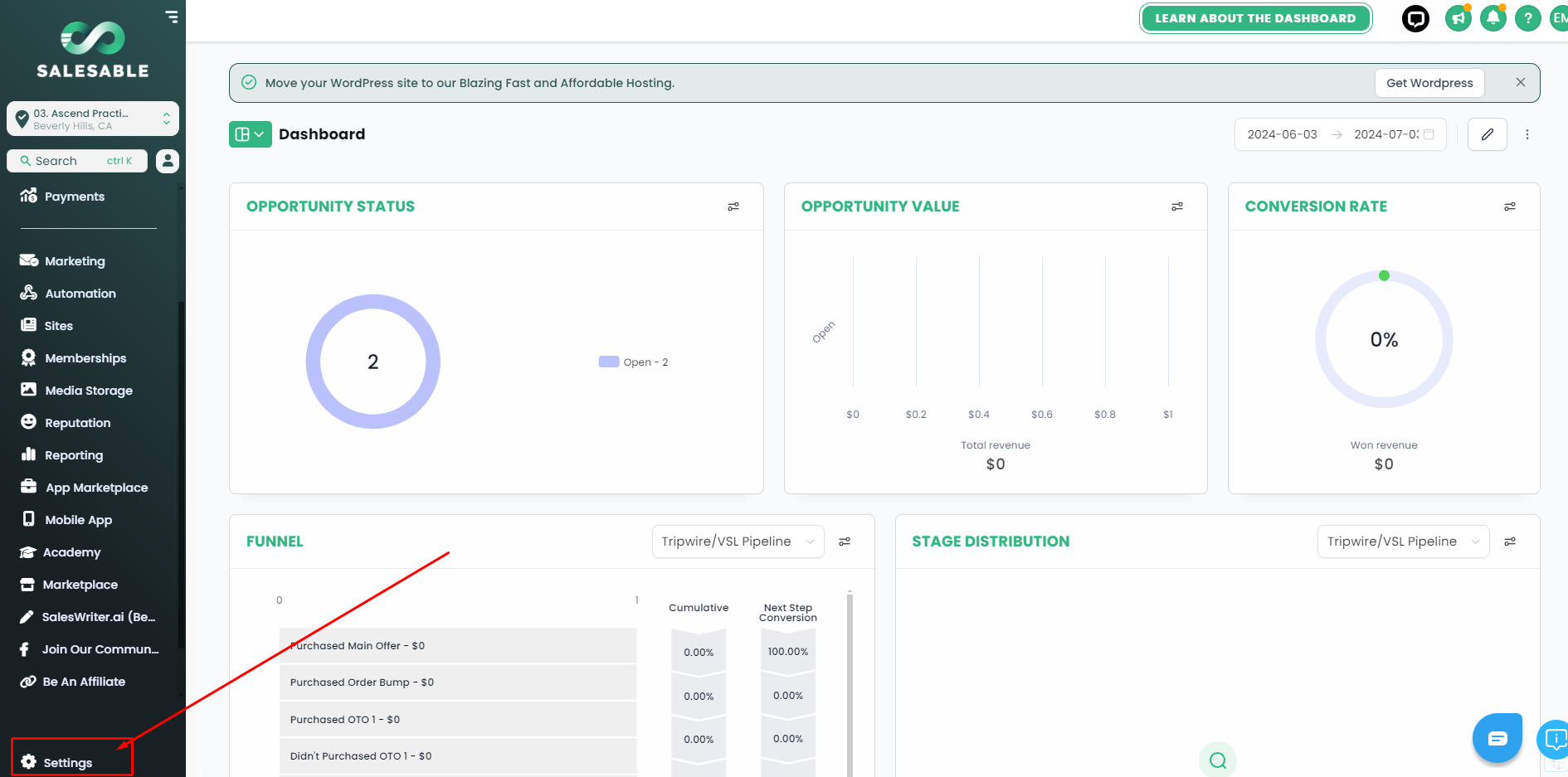 Login to Salesable -> Select a Sub-Account -> Click Settings -> Business Profile