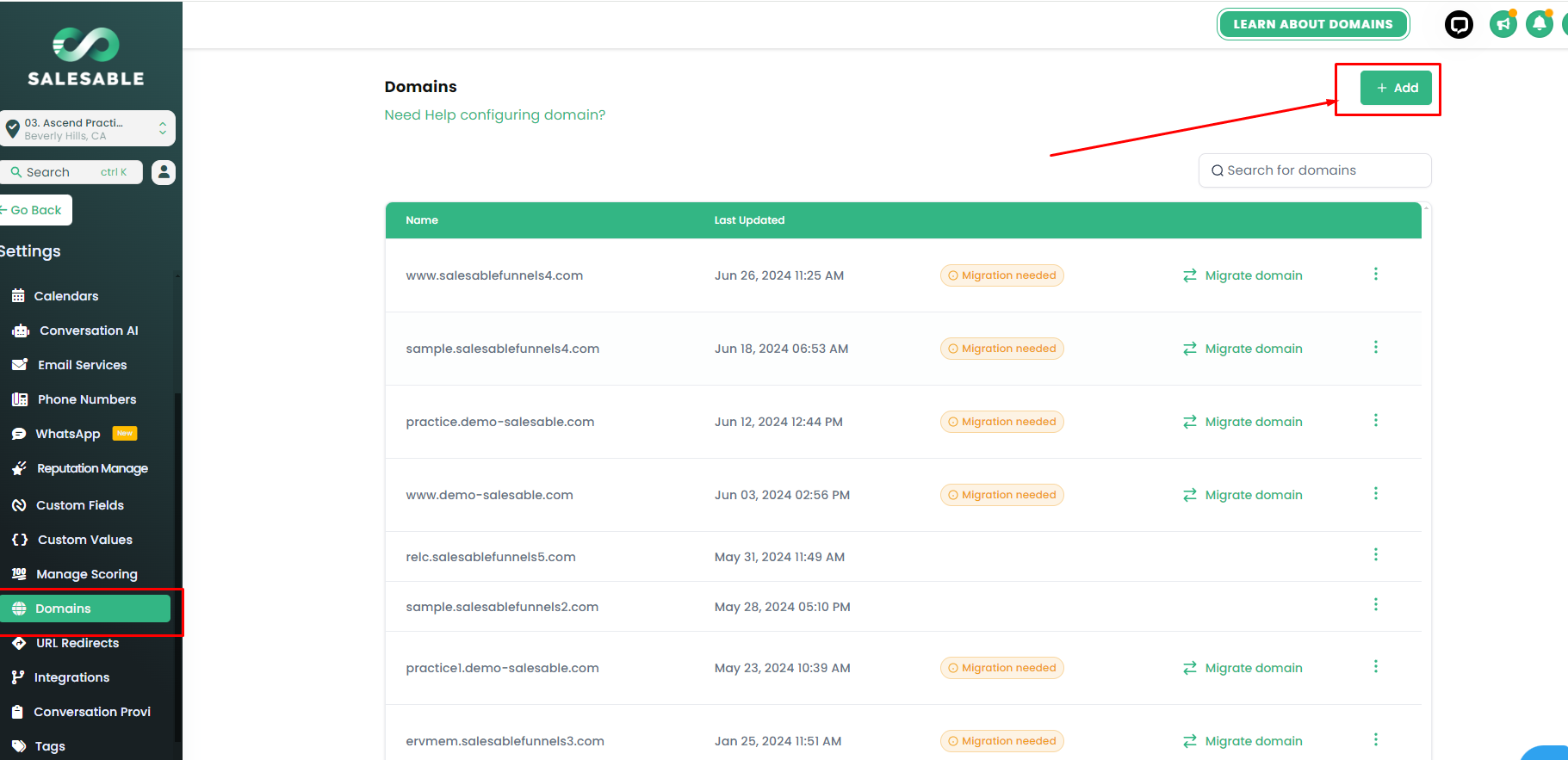 Within Salesable, there are many places to add a domain, let’s briefly explore each one. We will provide resources to learn more.