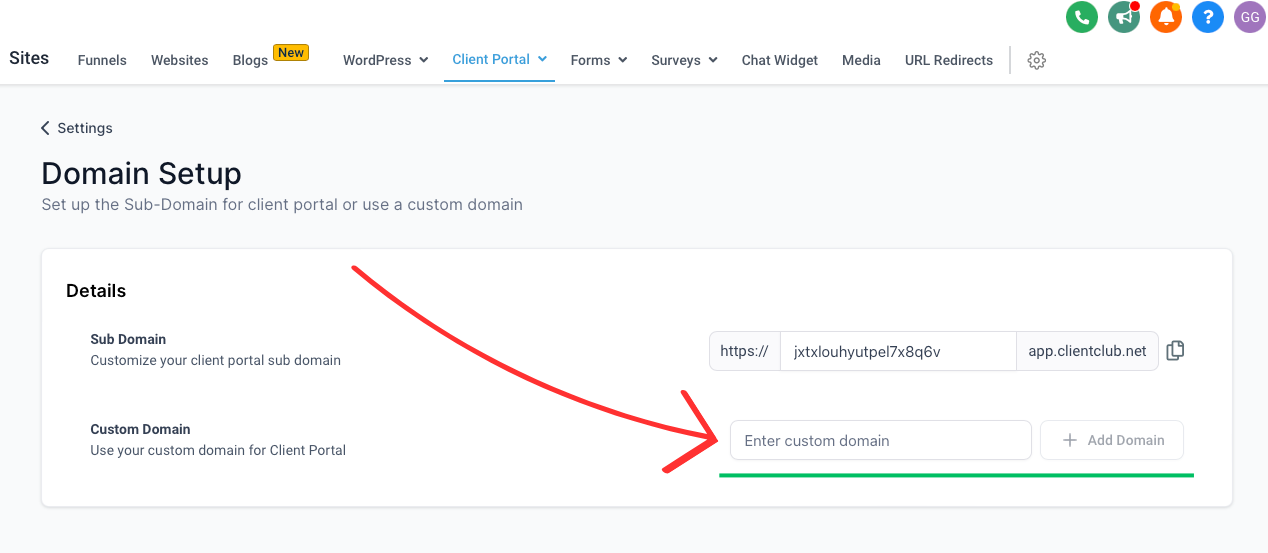 At the sub-account level to customize domains for individual clients a branded domain can be set up. This will be done under the sub-account settings, within the business profile.